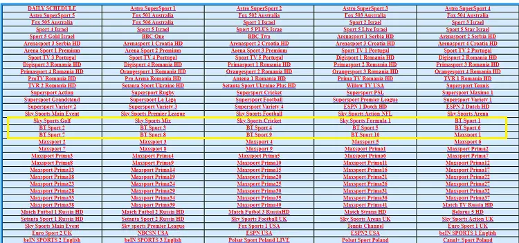 Step 14: Scroll down and choose the Sky channel (This website shows many options of Sky channels and other sports channels to stream free)